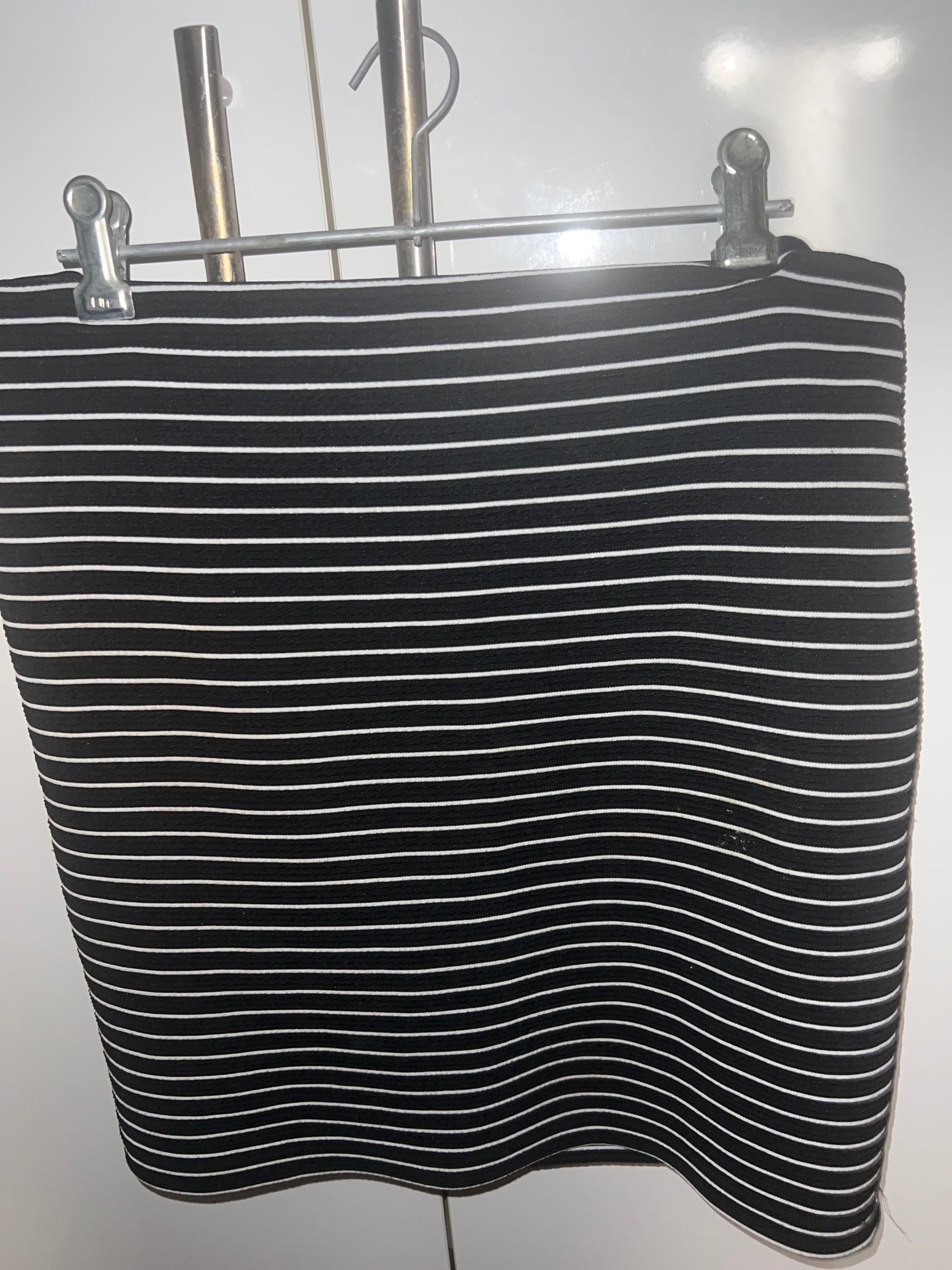 Women's Black Striped Skirt - Size 12 - Pre-Loved
